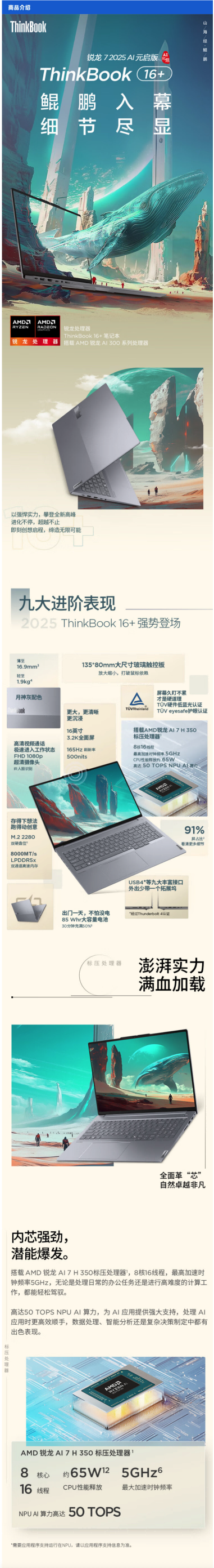 联想ThinkBook 16+ AI7 H350 32G 1TB 16英寸商务办公笔记本电脑 AI7 H350 32G 1T SSD